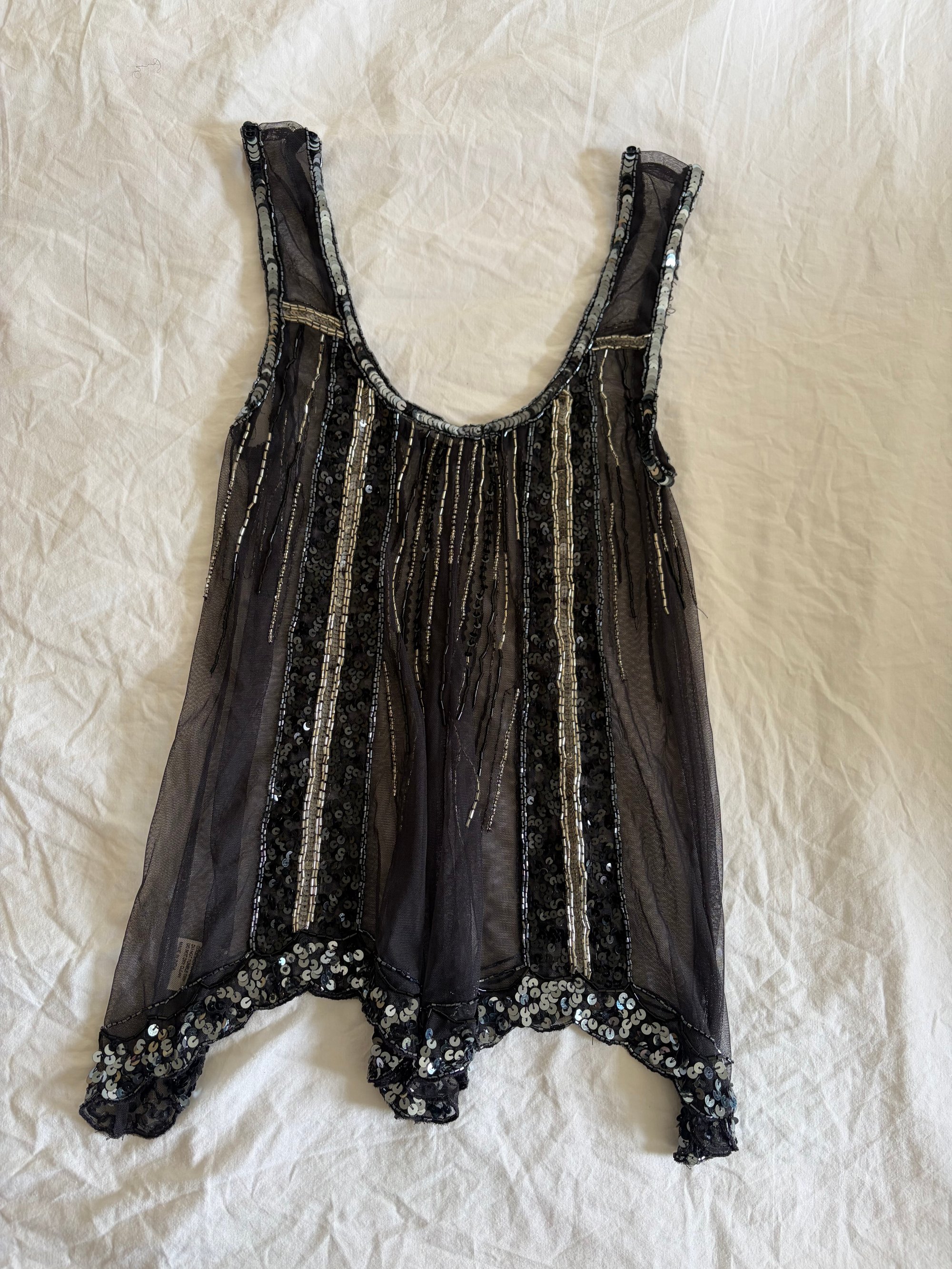 00s Lipsy Black Beaded Asymmetrical Hem Cami