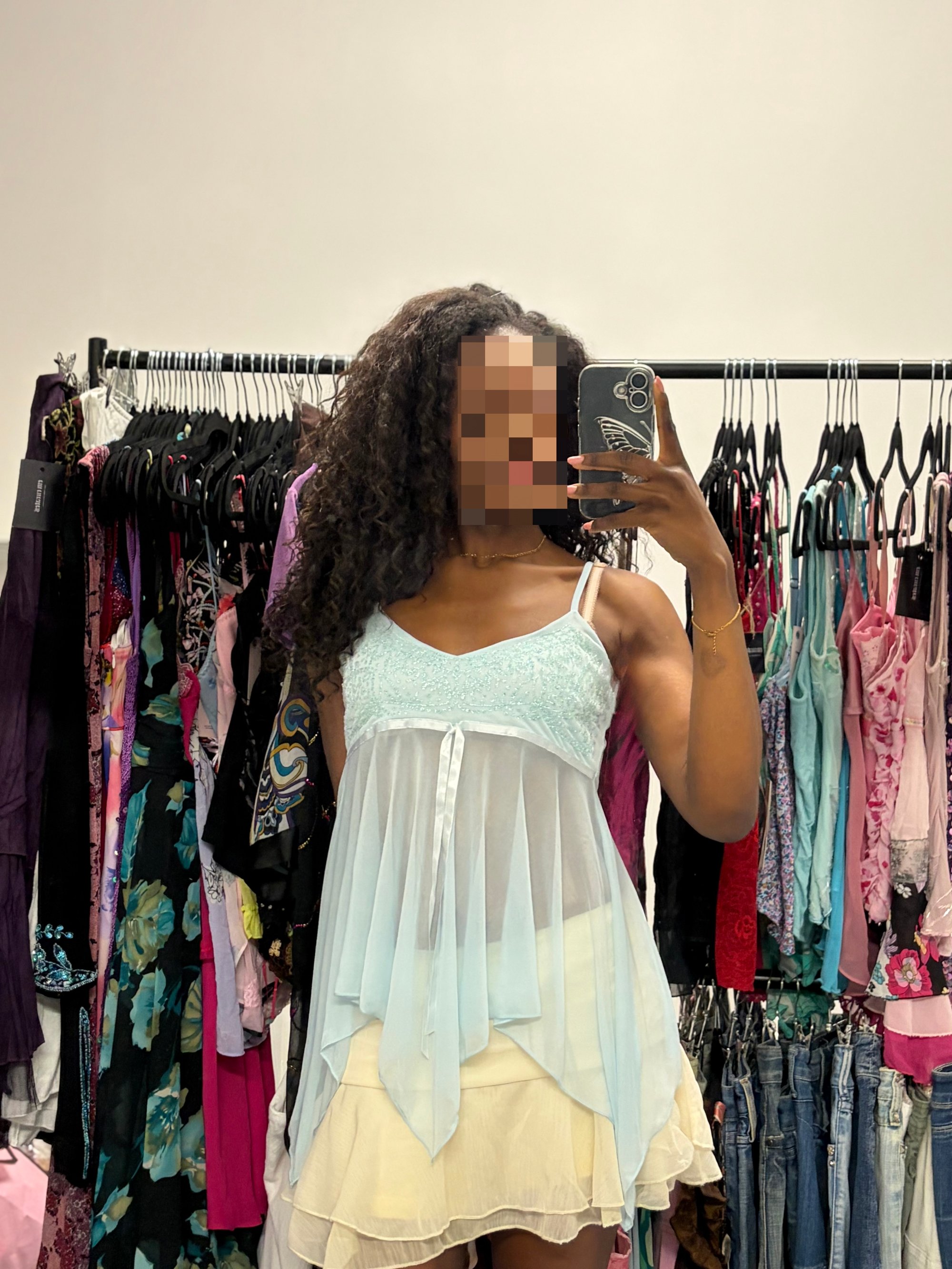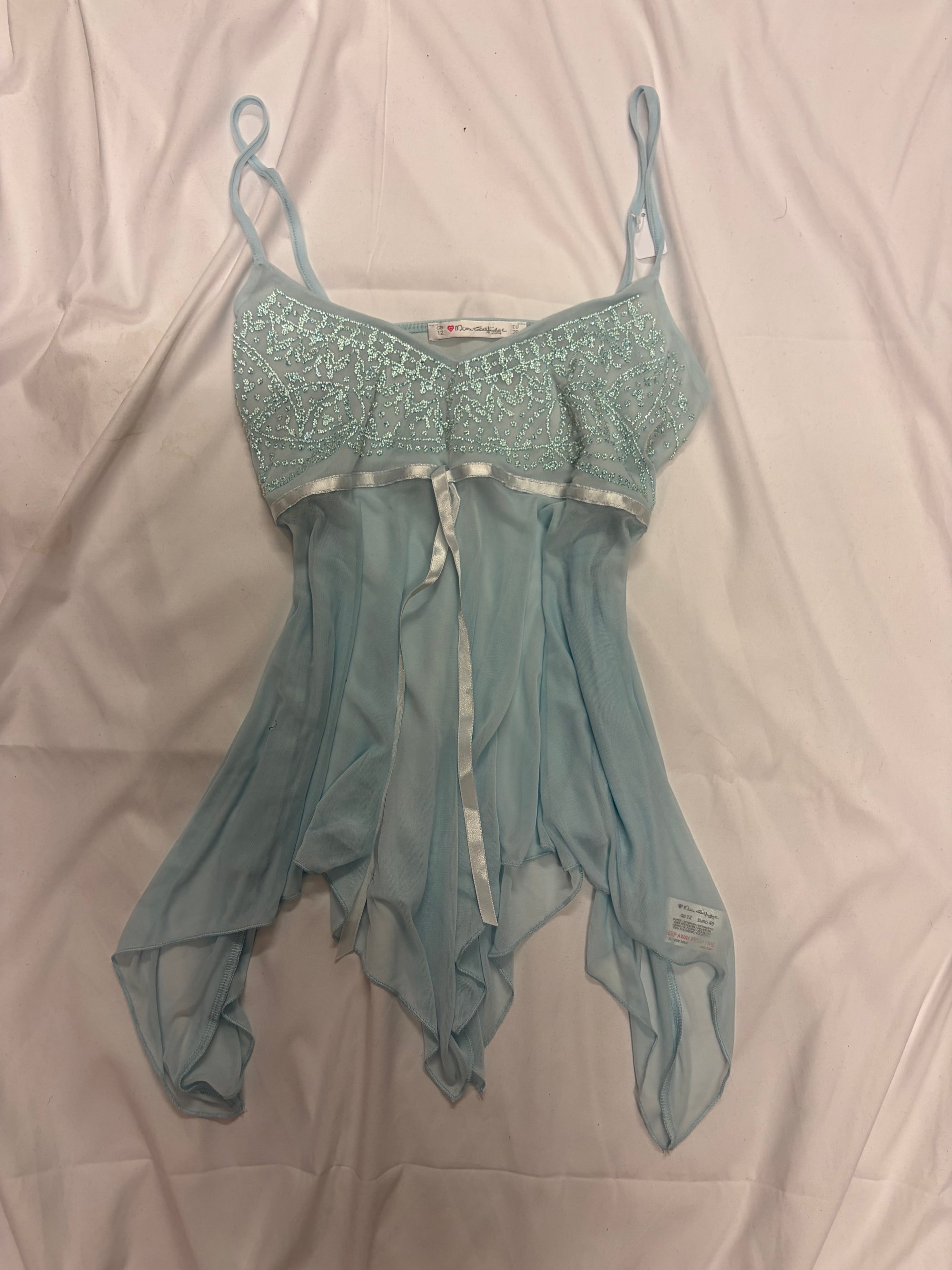 00s baby blue hanky hem fairy cami with ribbon and sparkles
