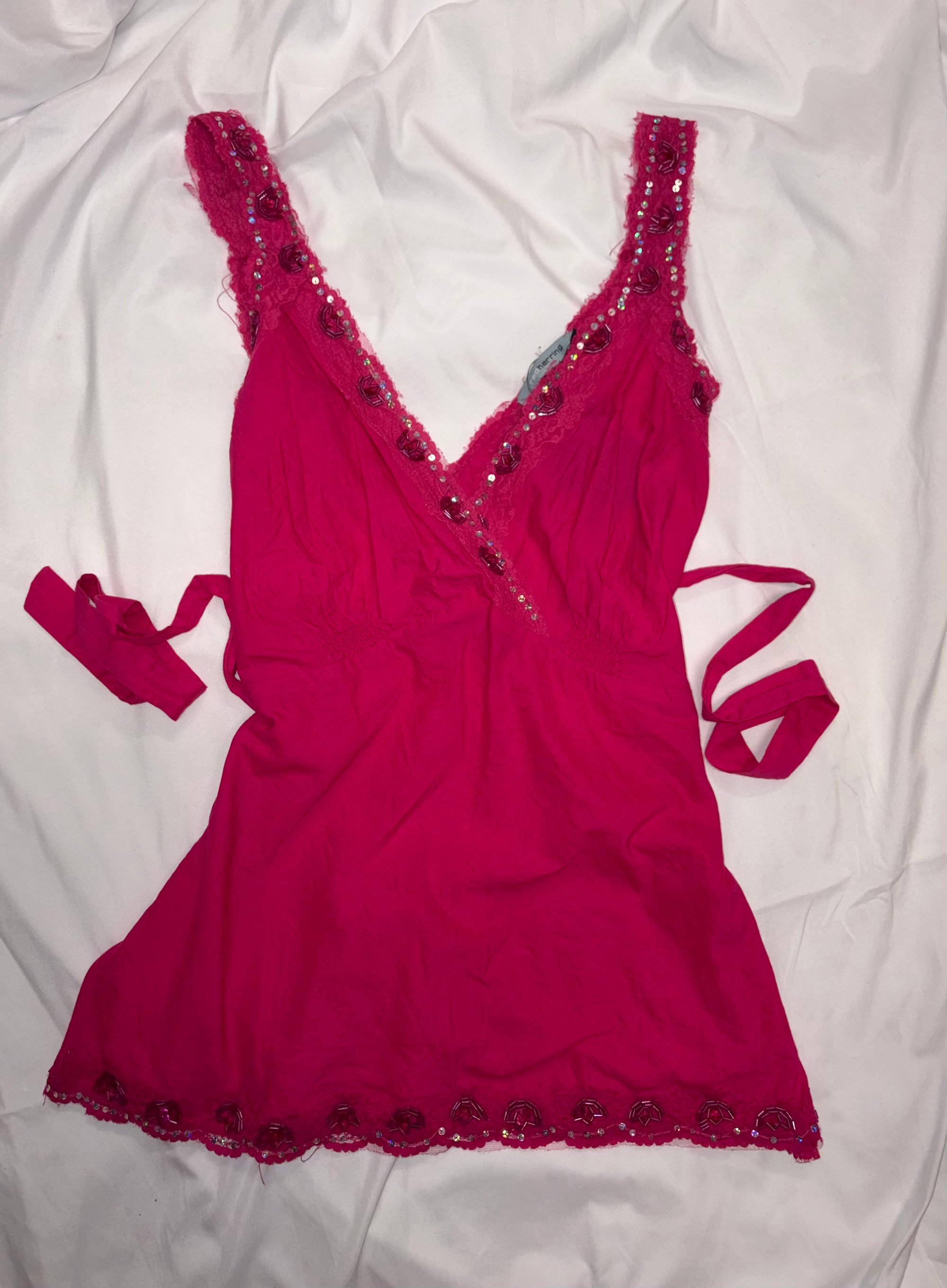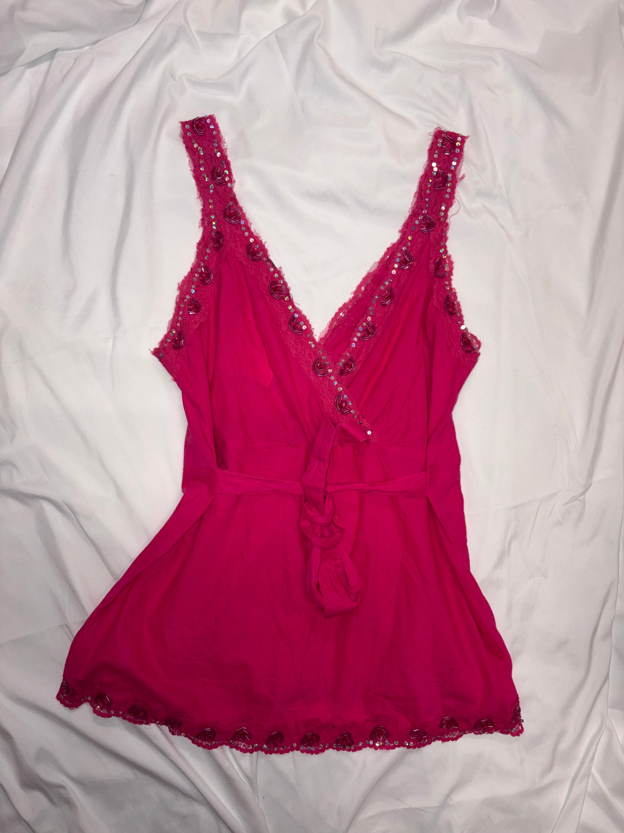 00s hot pink tie back sequin cami top