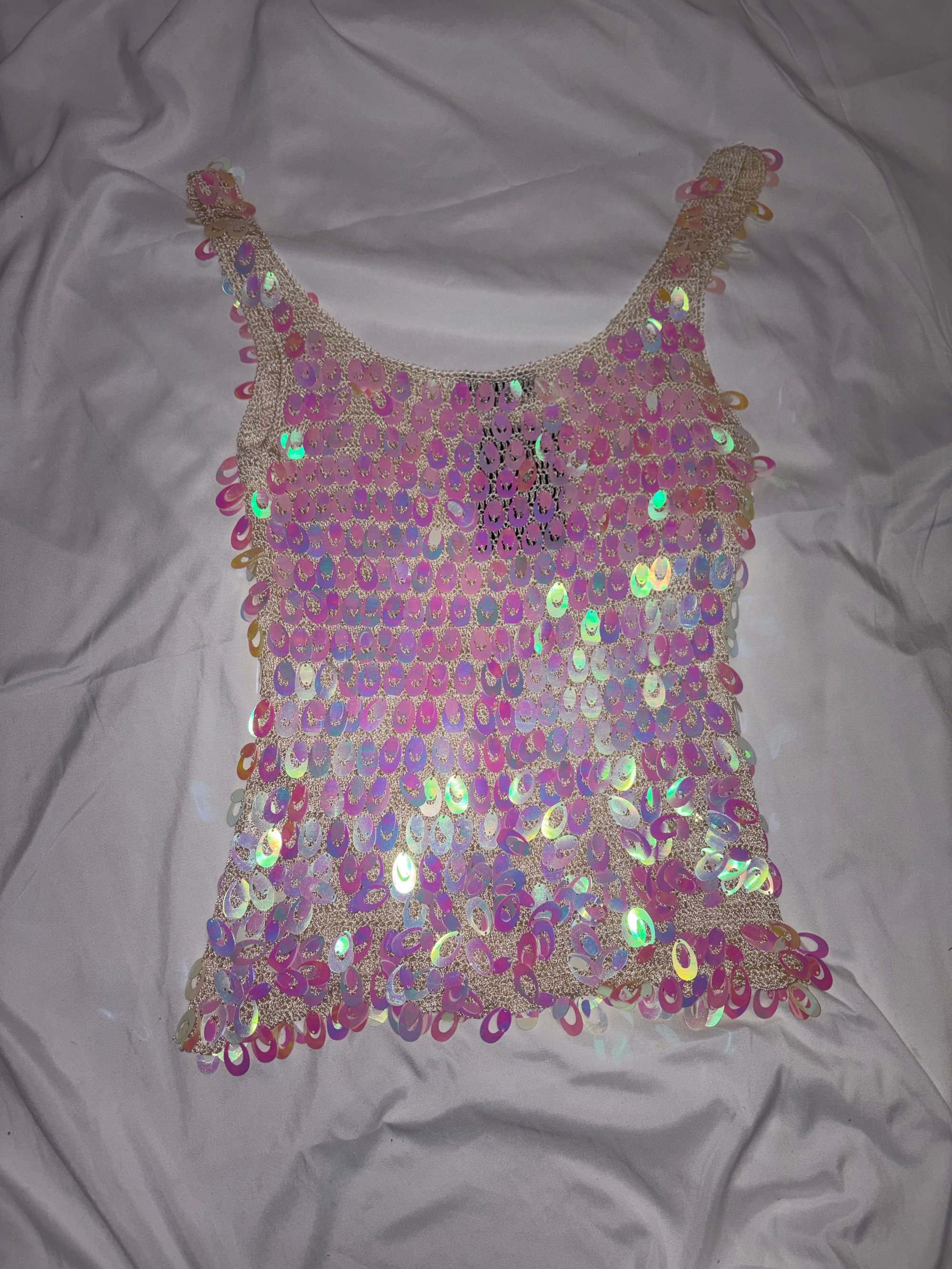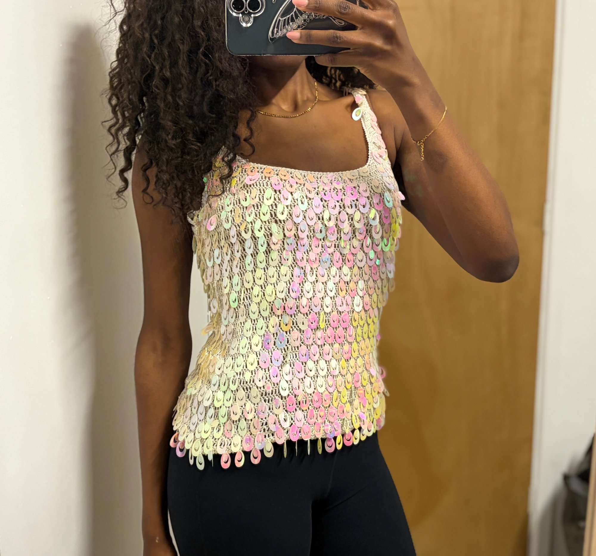 00s iridescent sequin crochet cami