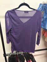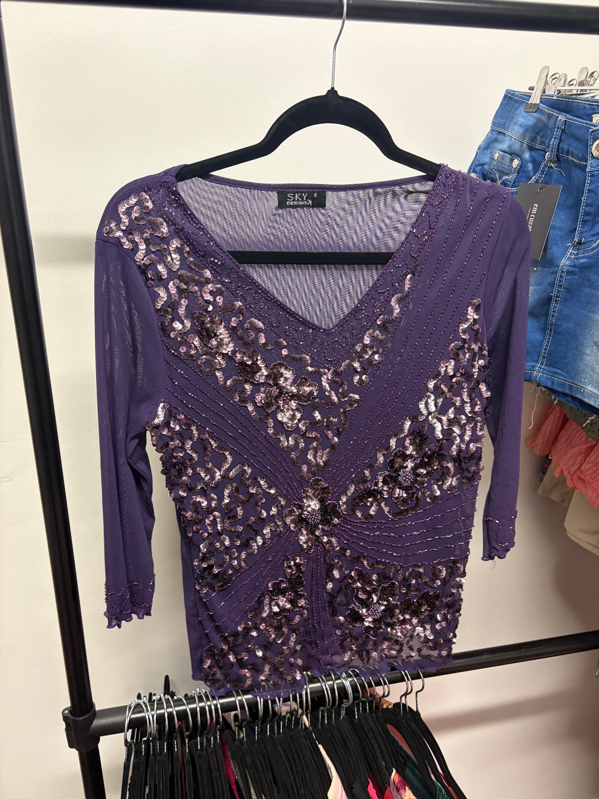 00s purple sequin and beaded micromesh long sleeve top