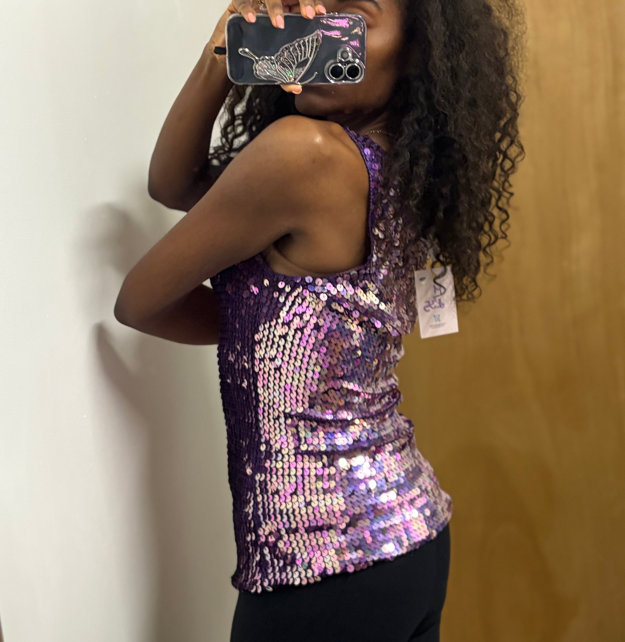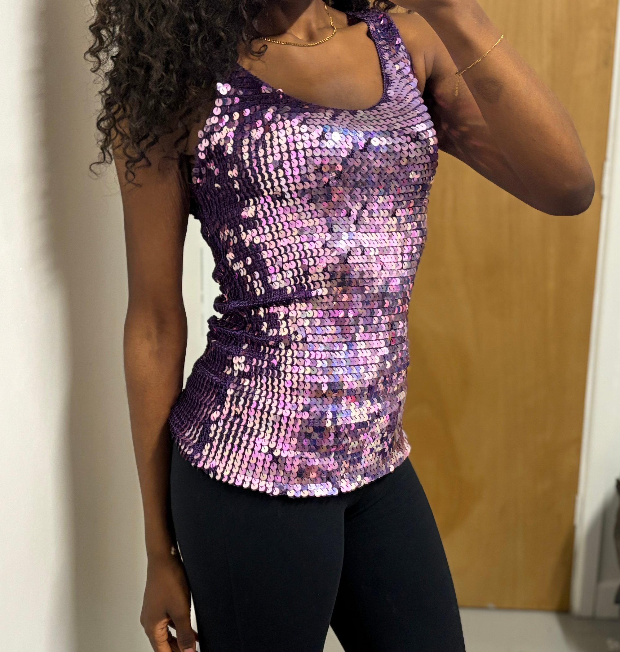 00s purple sequin crochet top