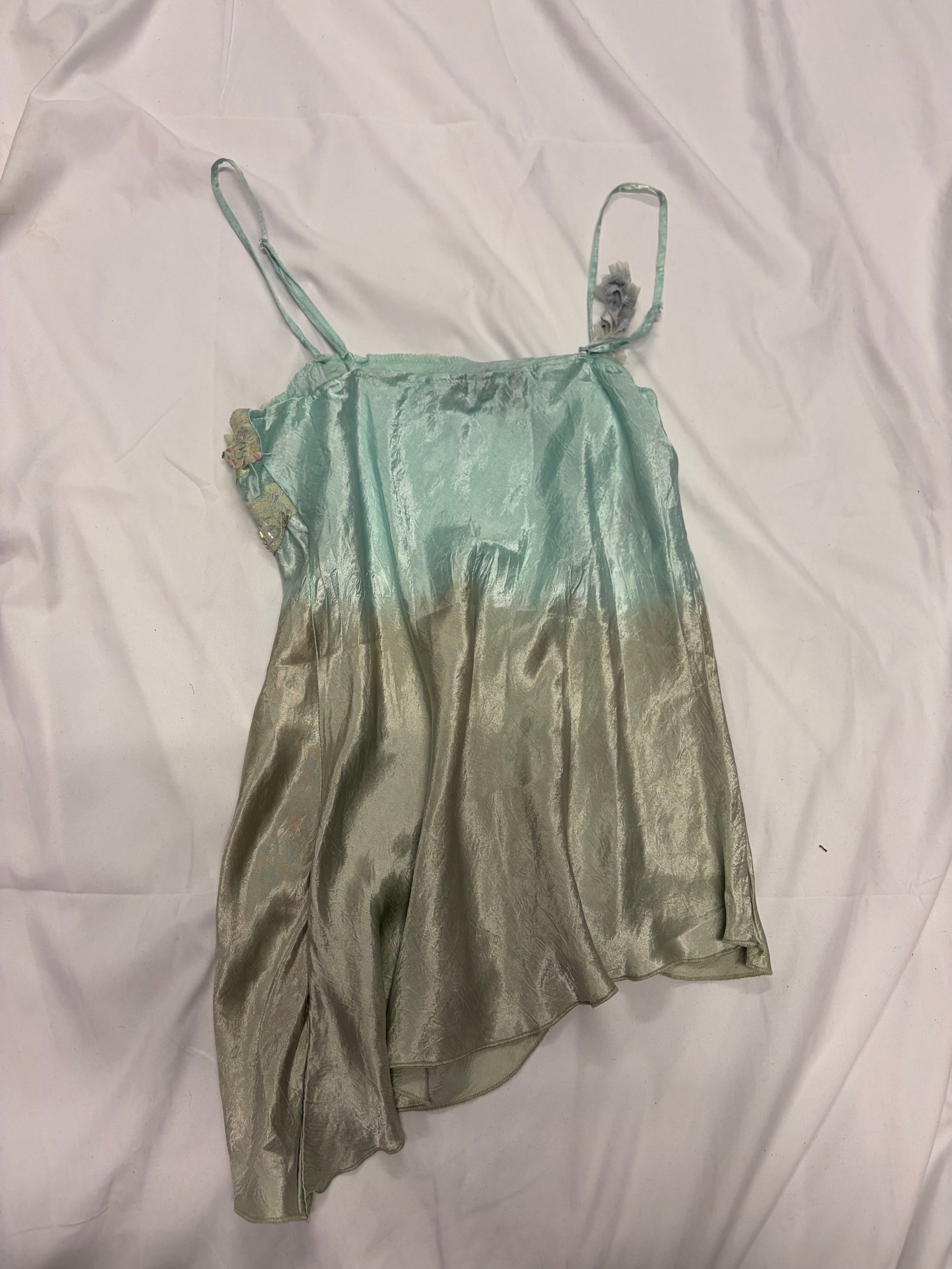 2000s rare asymmetrical hem cami mermaid fairy cami with sequins and ribbon