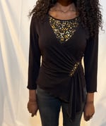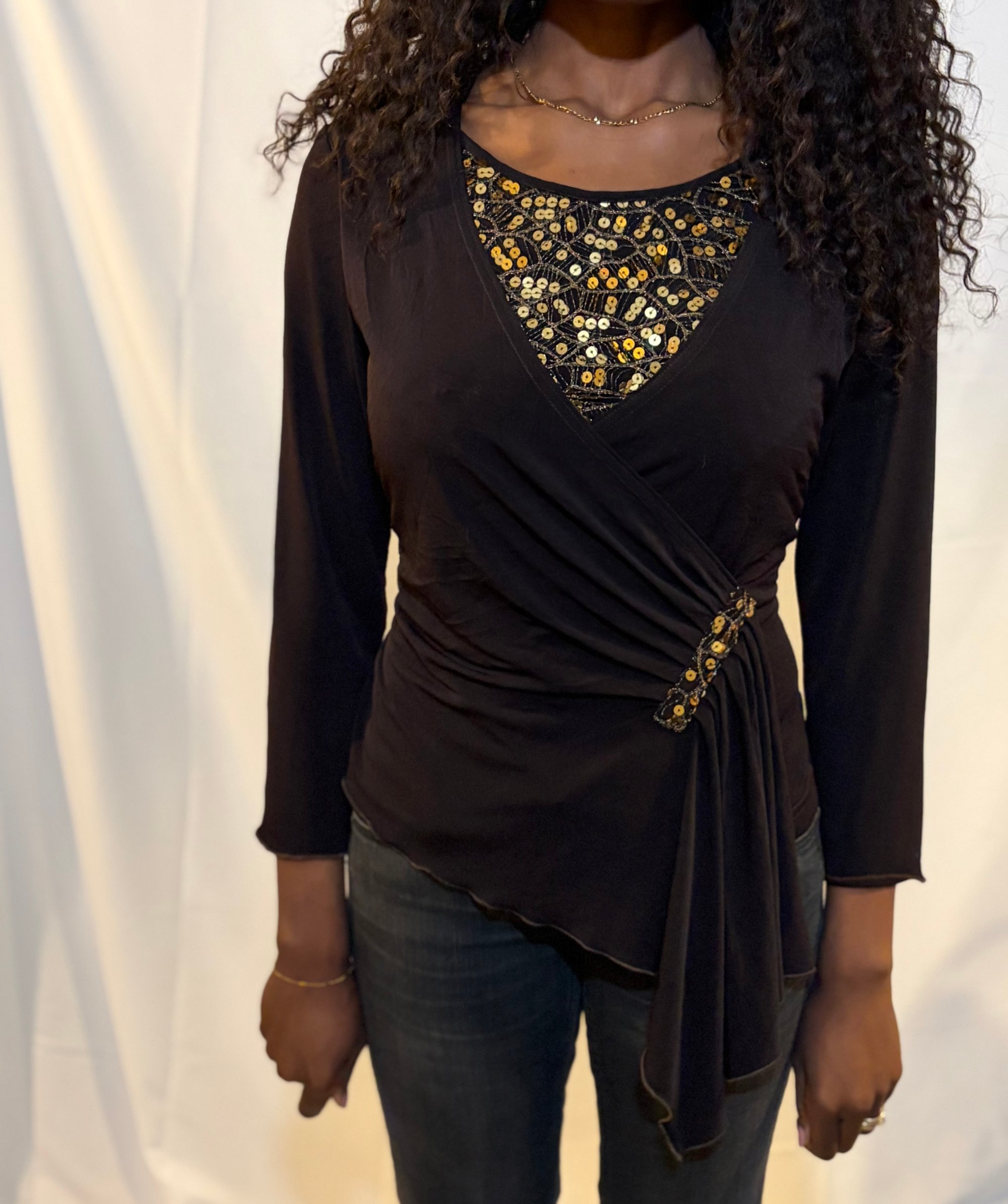 Italian vintage brown and gold sequin asymmetrical hem top