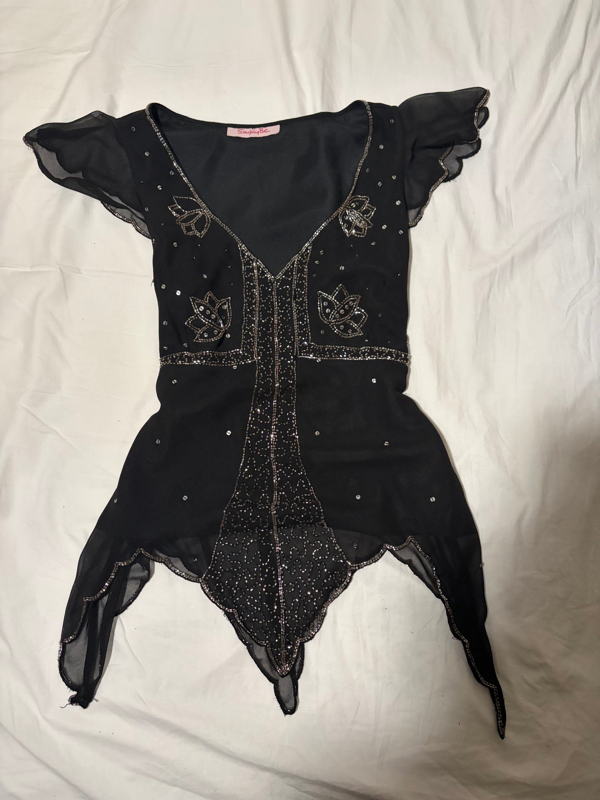 Y2K black handkerchief hem beaded top size UK size 14