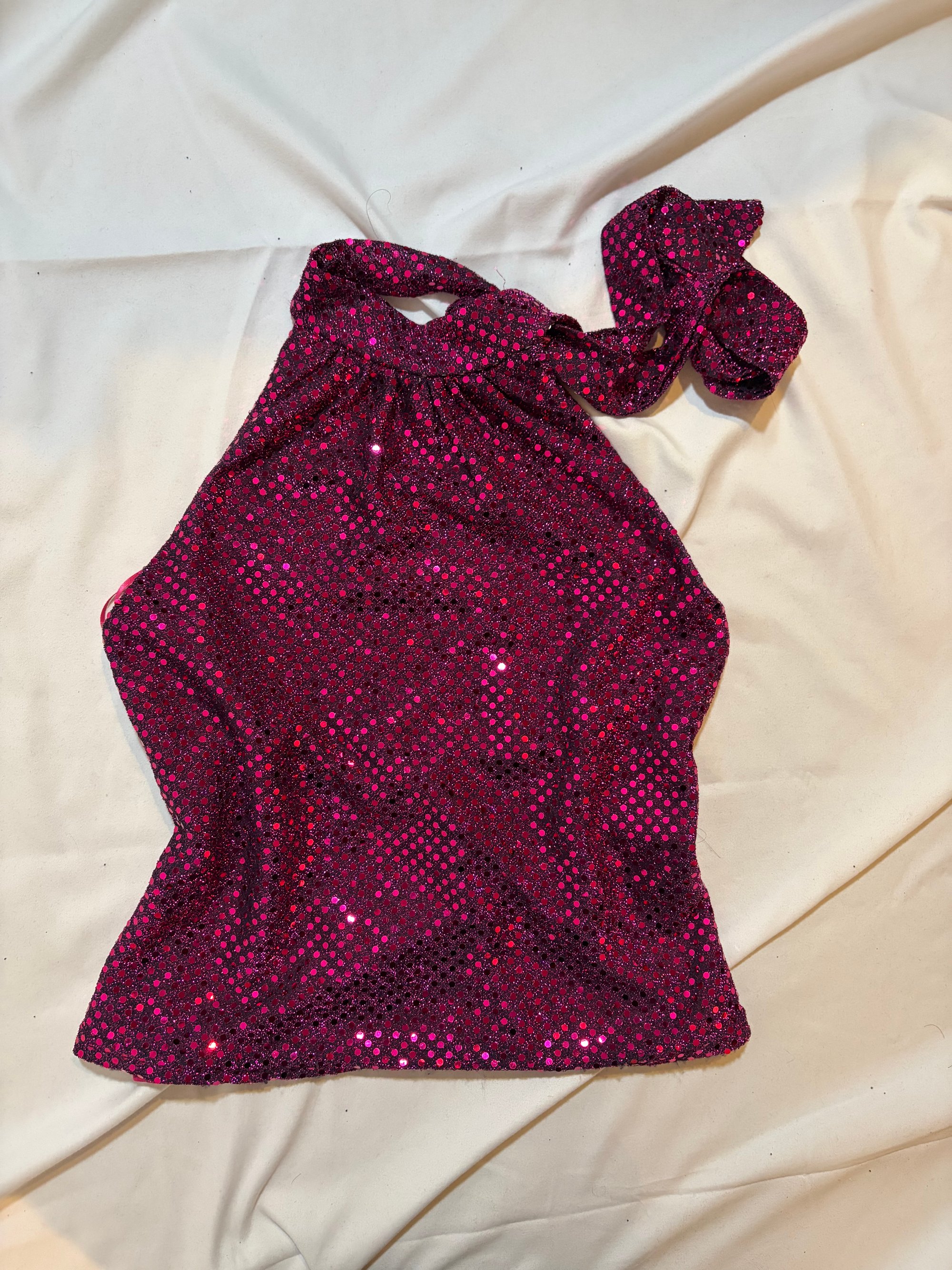 Vintage 2000s Bay pink sparkly halter neck cami top