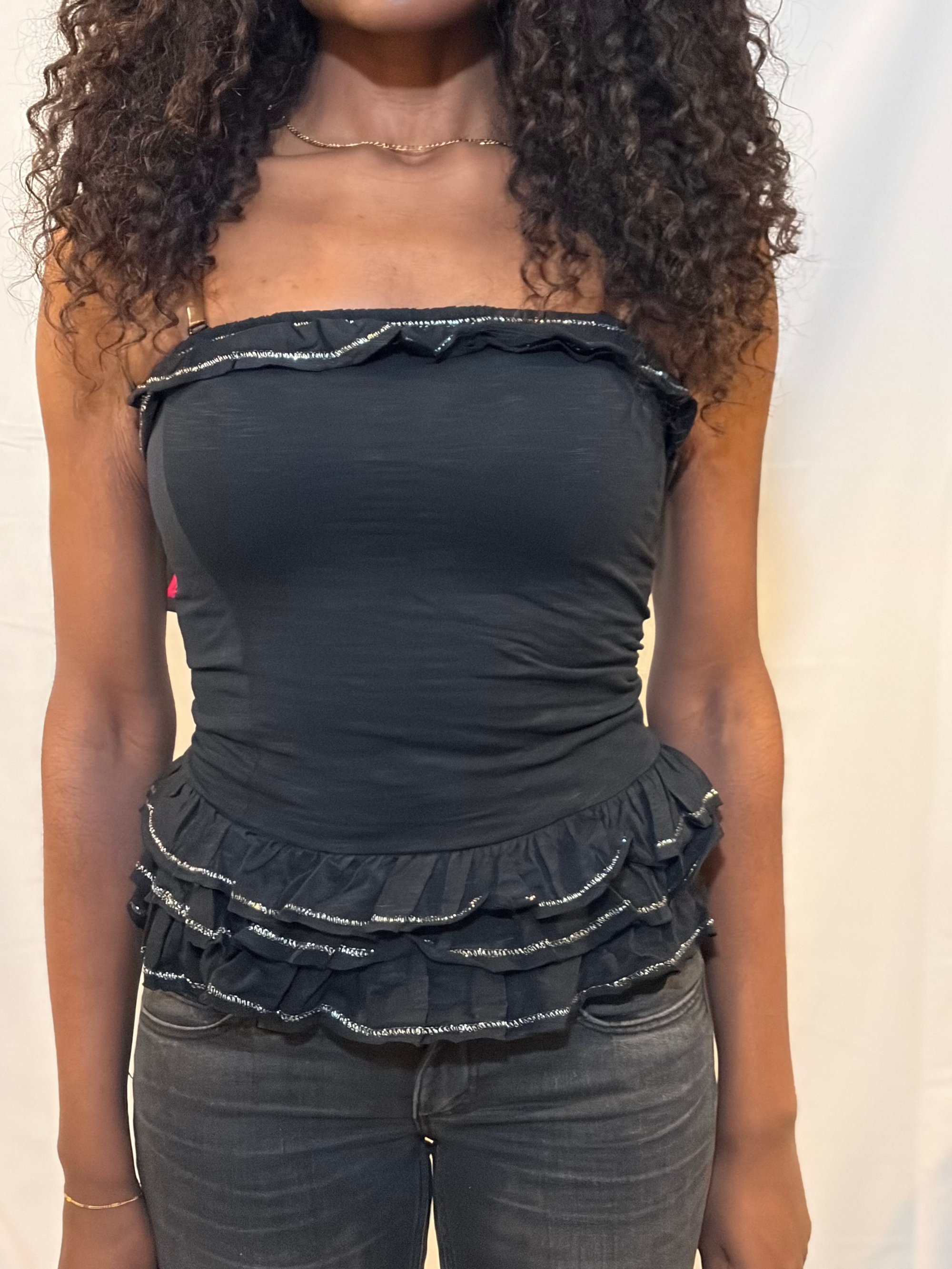 Vintage 2000s Miss Selfridge black sparkly bandeau top