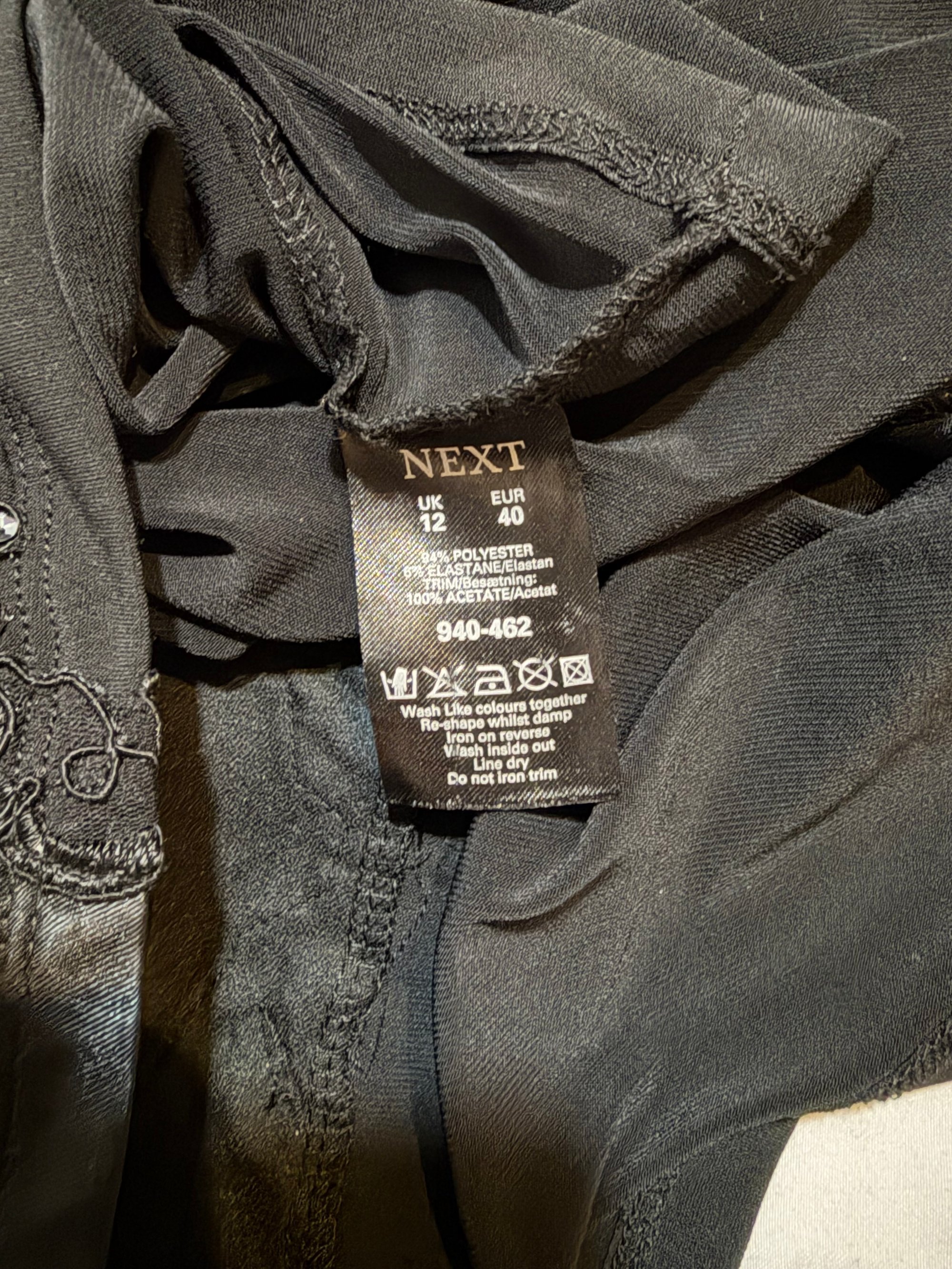 Fit: labelled size 12, would fit UK 12-14 shown on size 8 pinned in place.