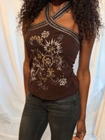Vintage 90s / Y2K brown embroidered and embellished halter neck top size UK size 10
