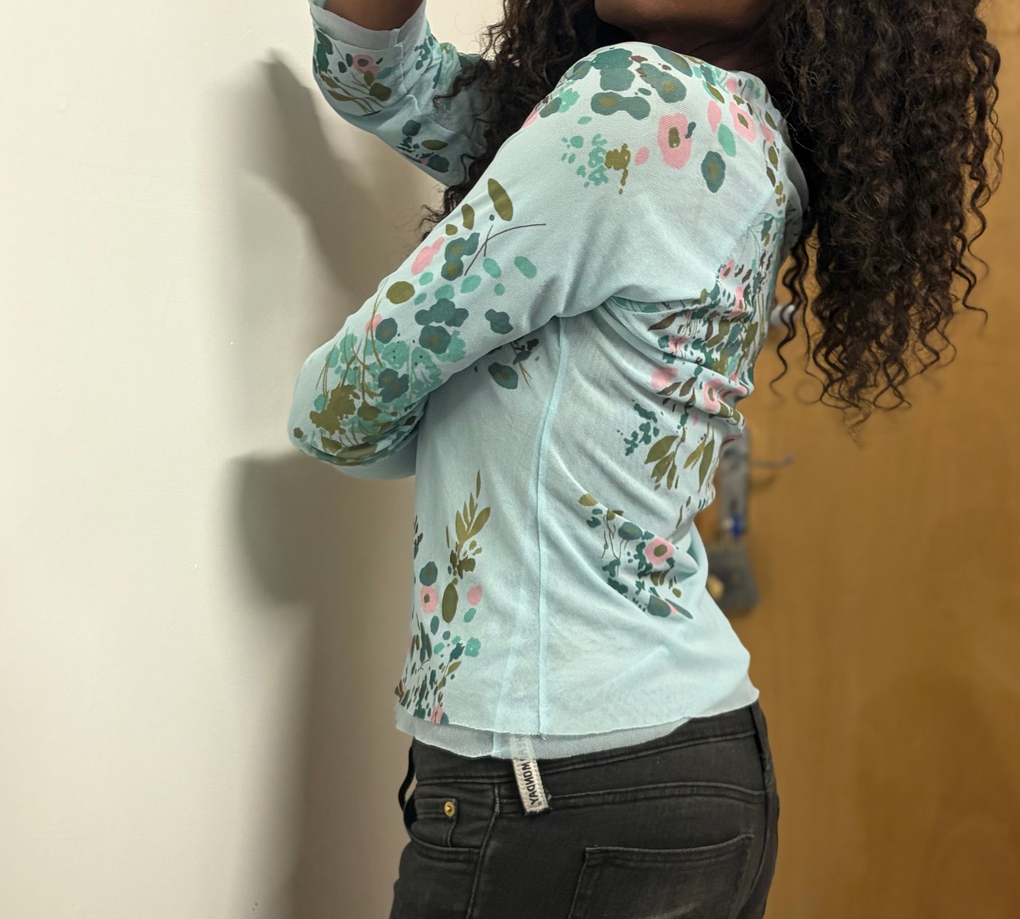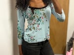 00s turquoise floral micromesh long sleeve top