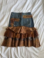 Vintage Y2K rare archival embellished denim ruffle skirt with floral appliqué