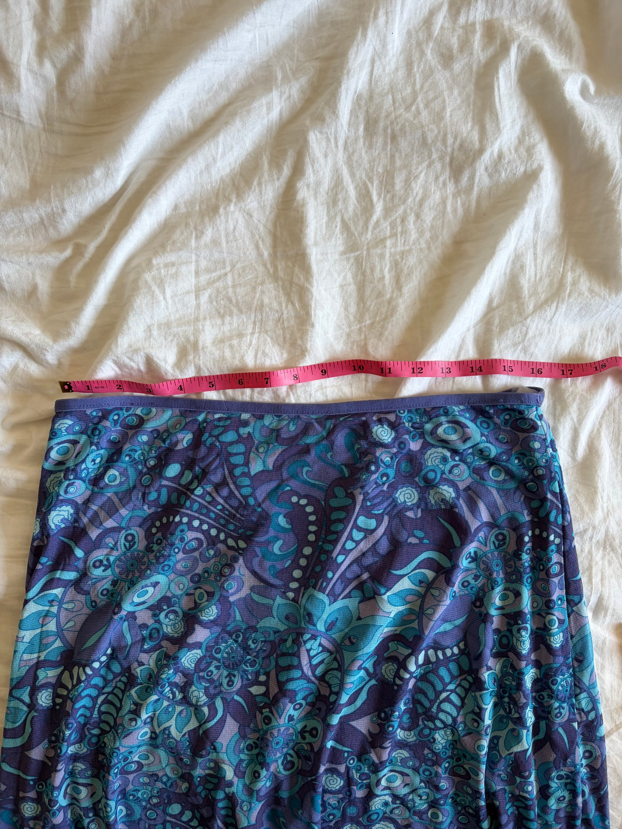 Vintage Y2K blue floral micromesh midi skirt with lettuce hem