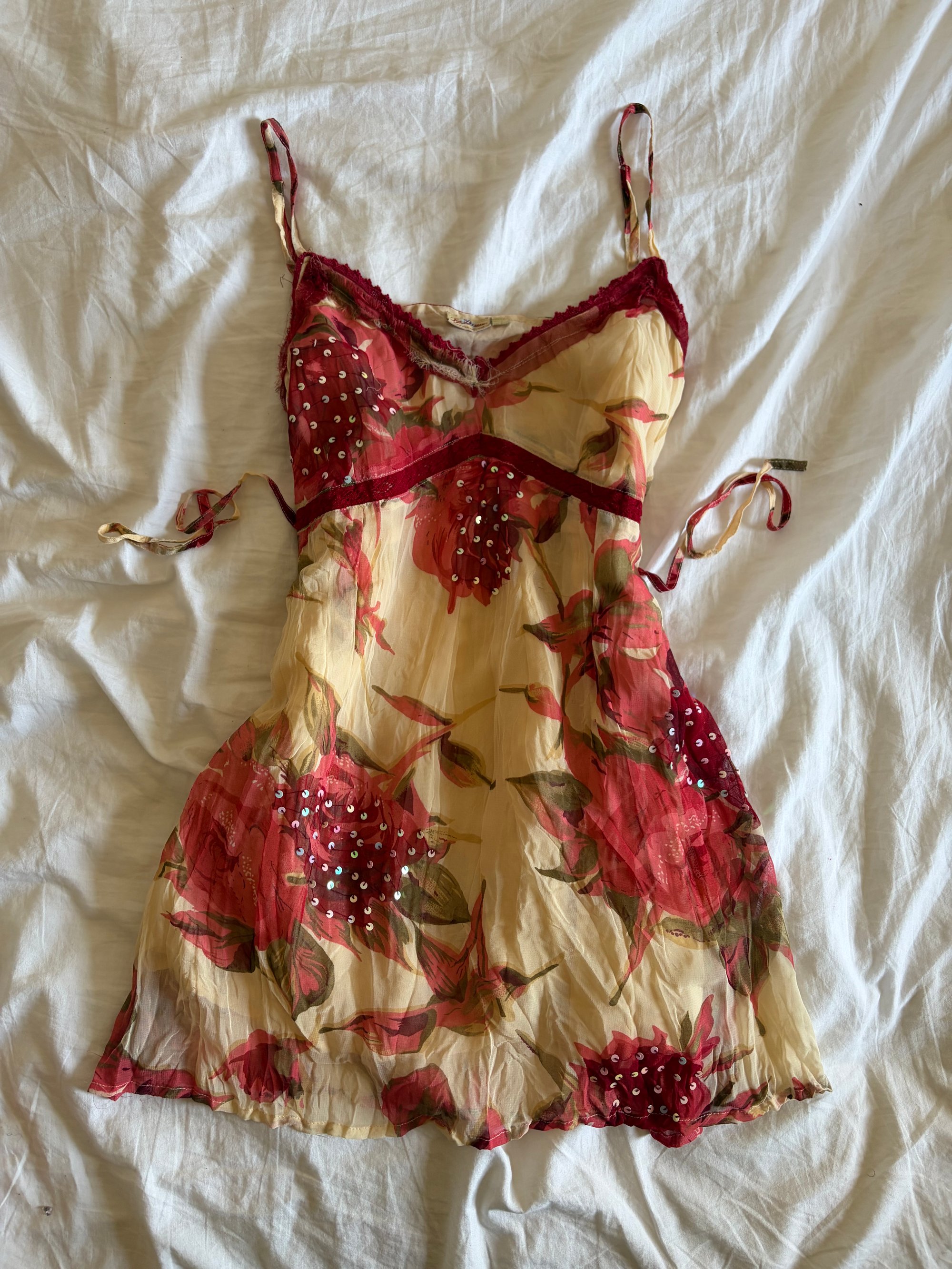 Vintage Y2K floral and sequin tie back cami