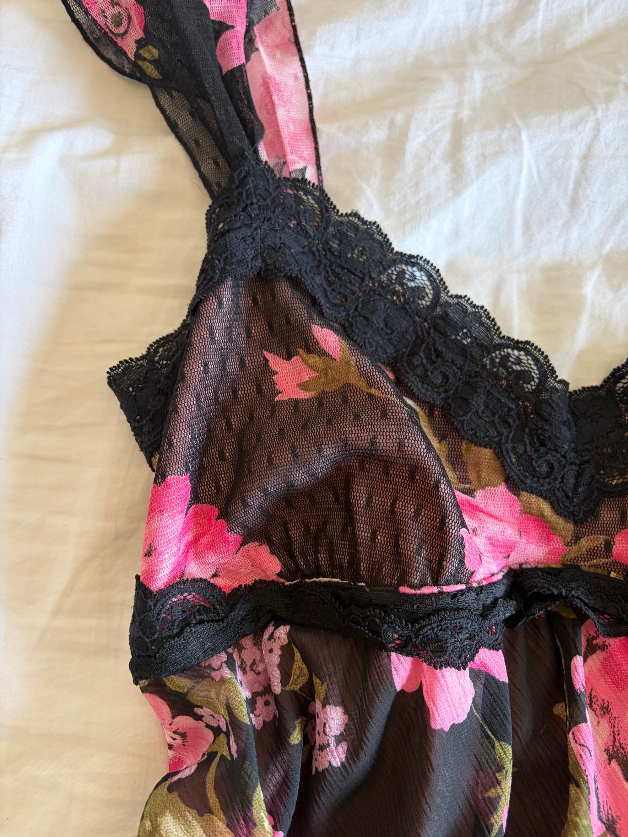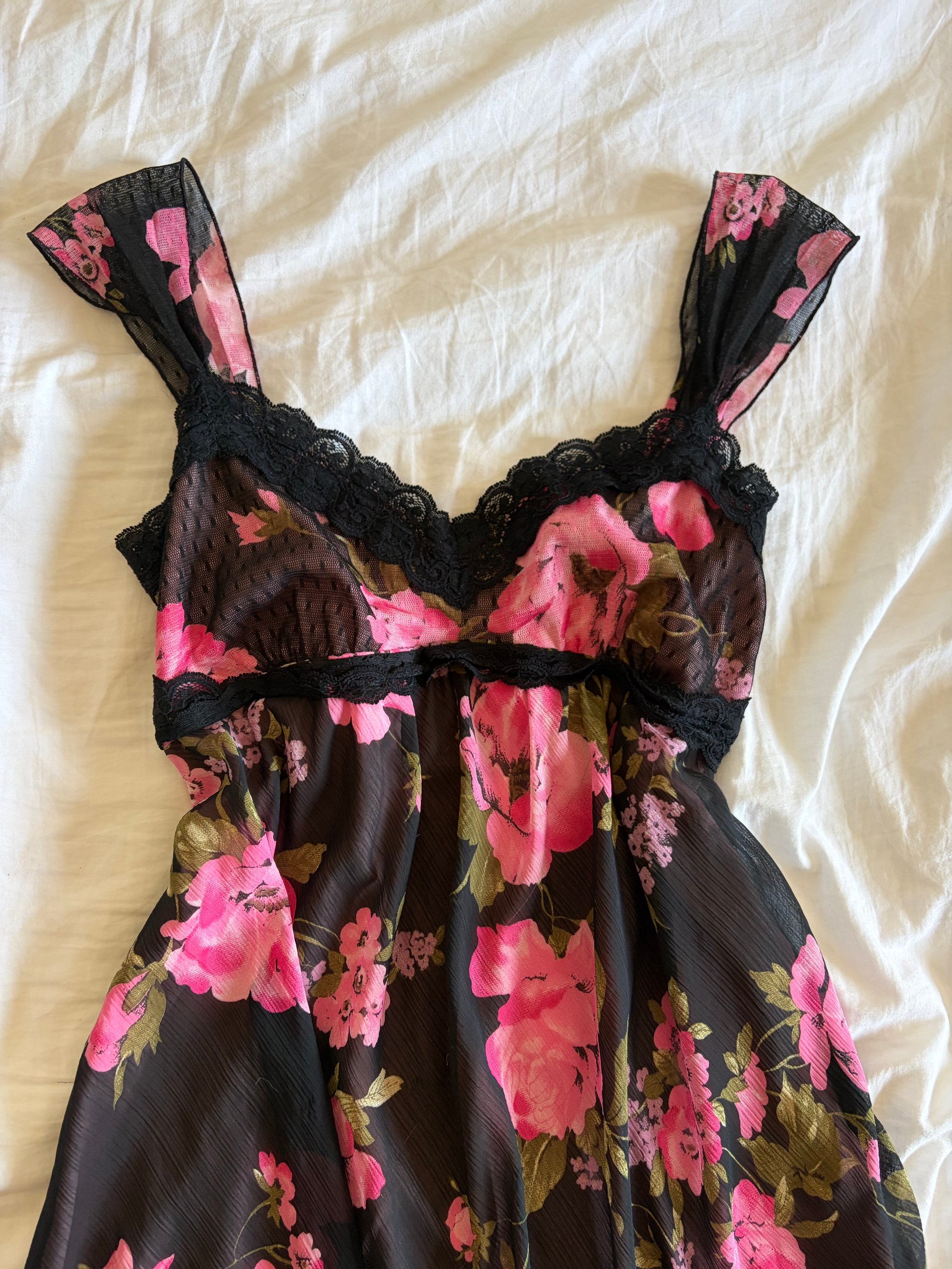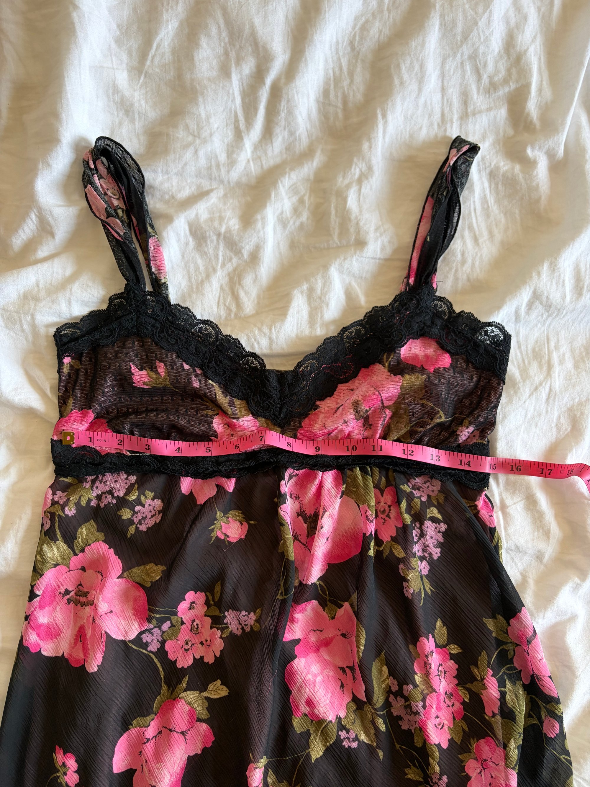 Vintage Y2K Morgan de Toi black floral dress with polka dots on cups