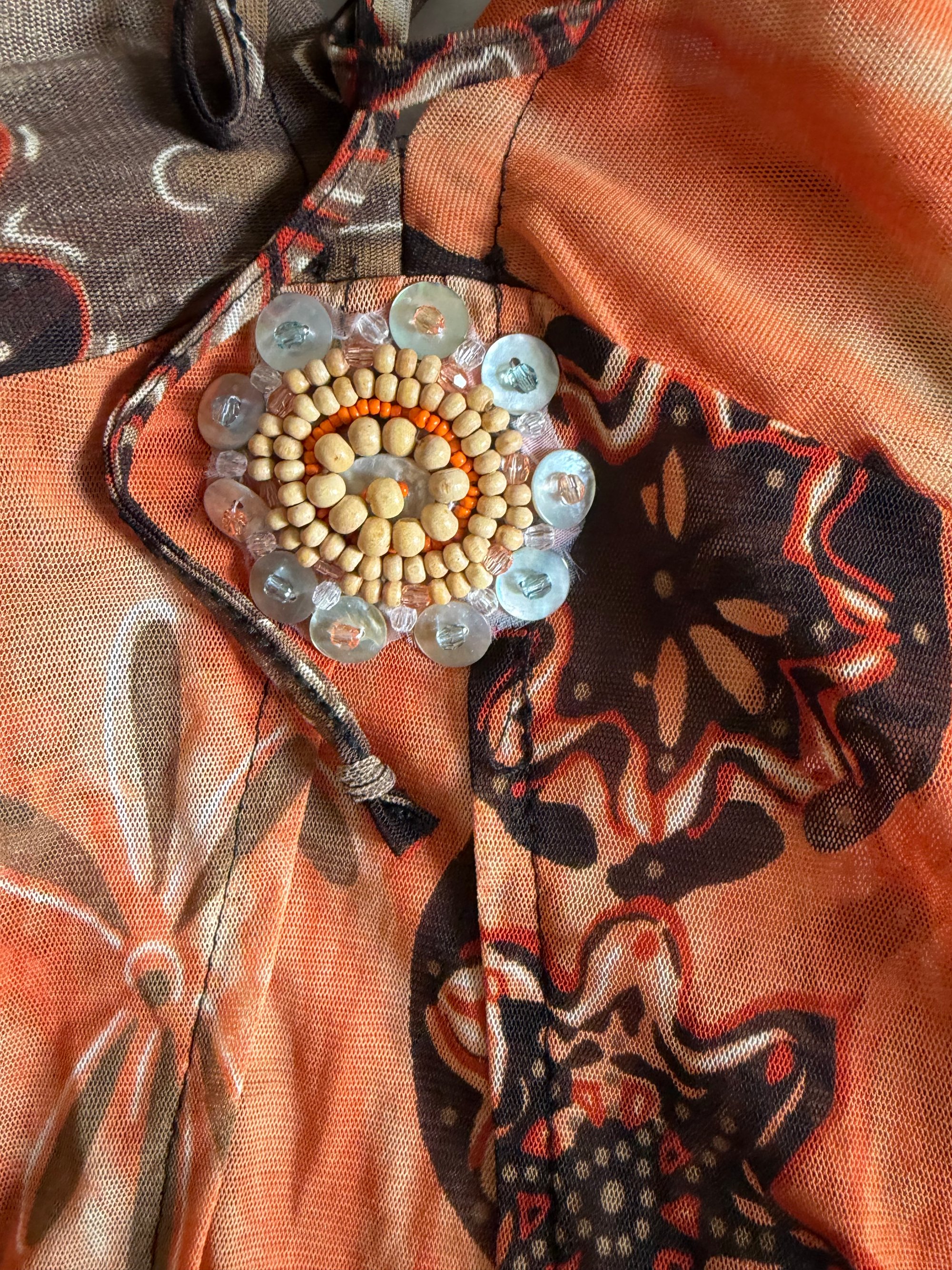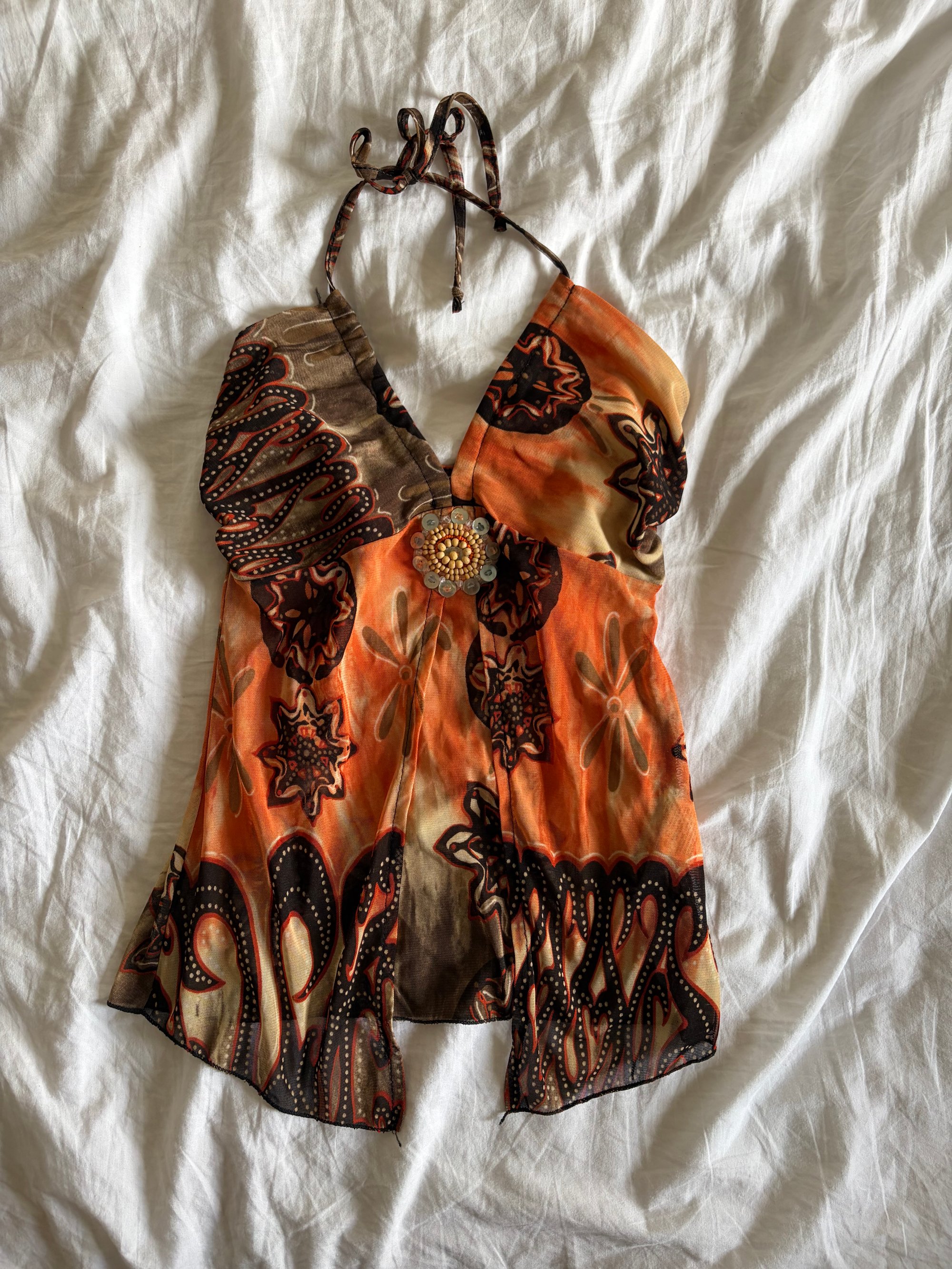 Vintage Y2K Orange and brown boho halter neck with embellishment
