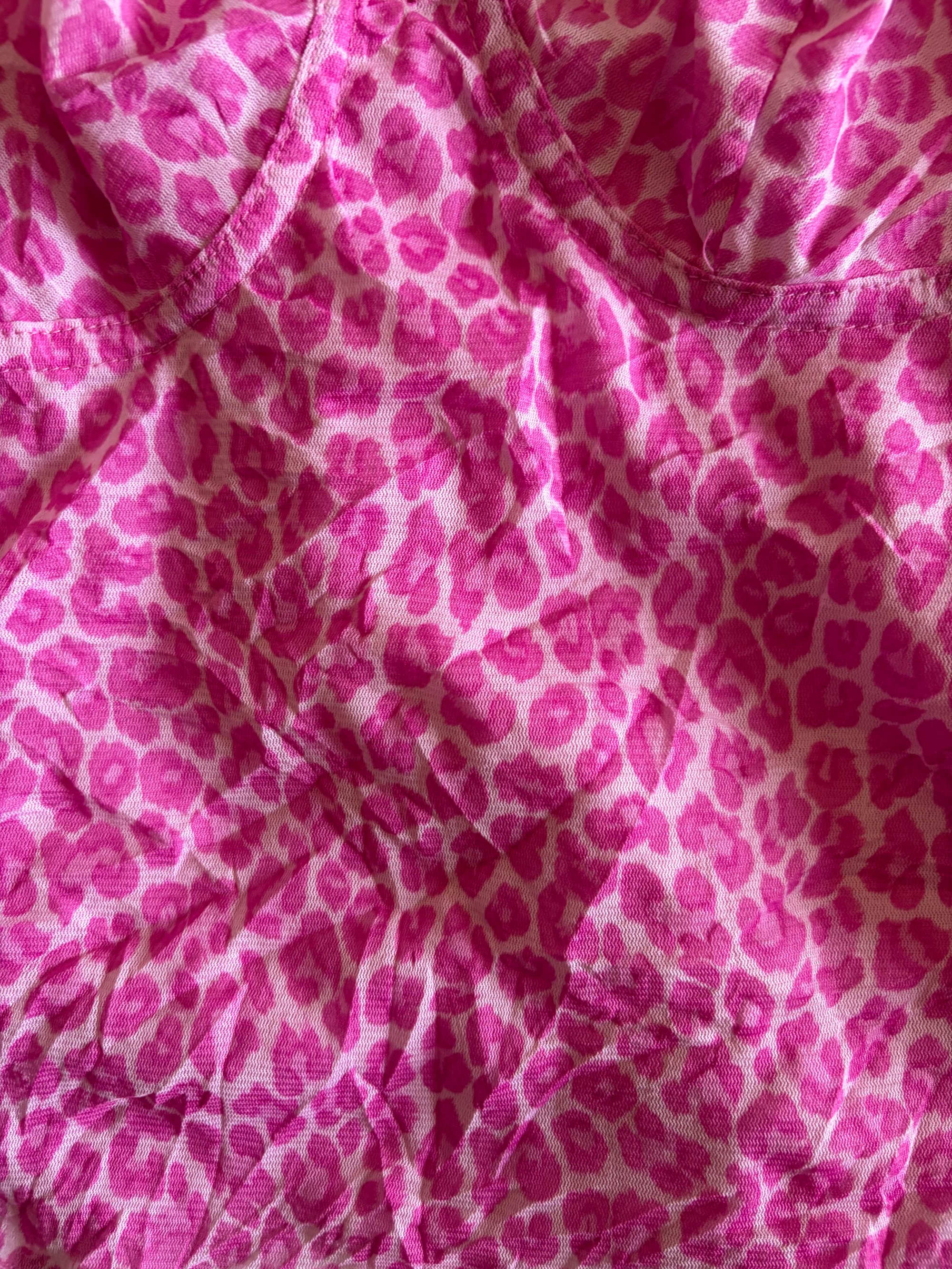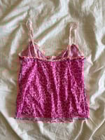 Vintage Y2K pink leopard micromesh cami with ruffle straps and trimming