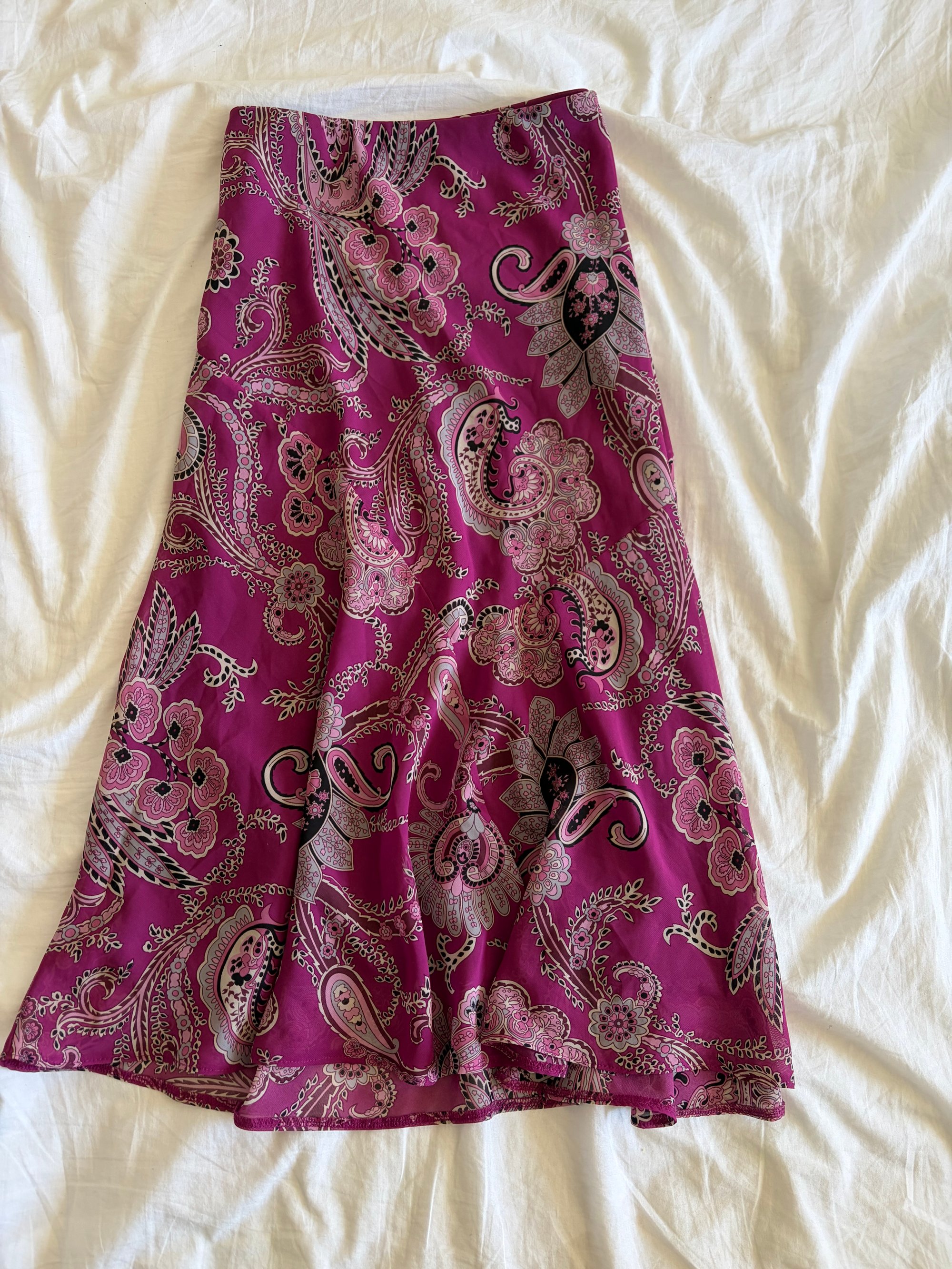 Vintage Y2K pink paisley floral floaty midi skirt