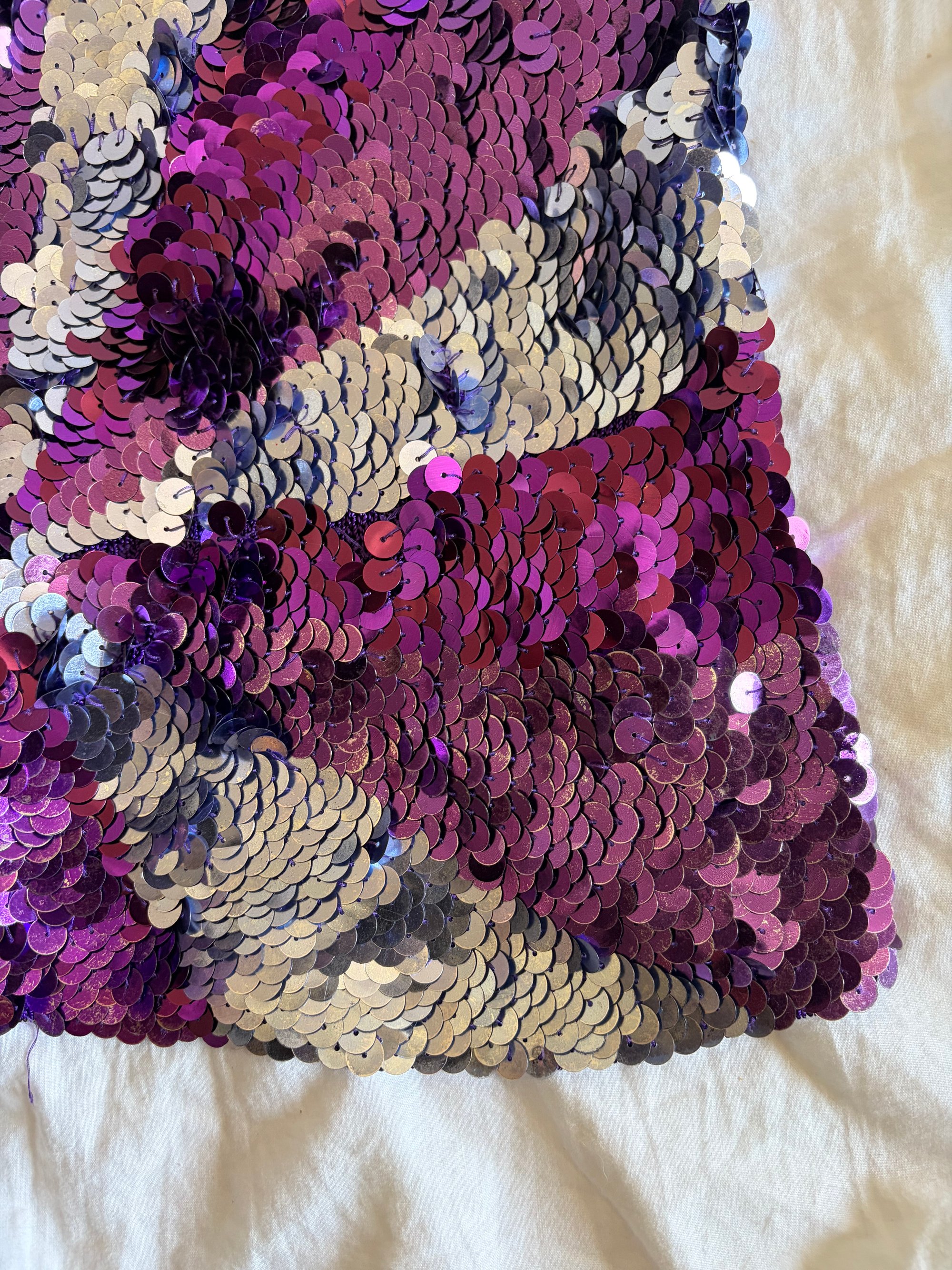 There are a missing patches of sequins and fading in some as shown in photos. Reflected in the price.