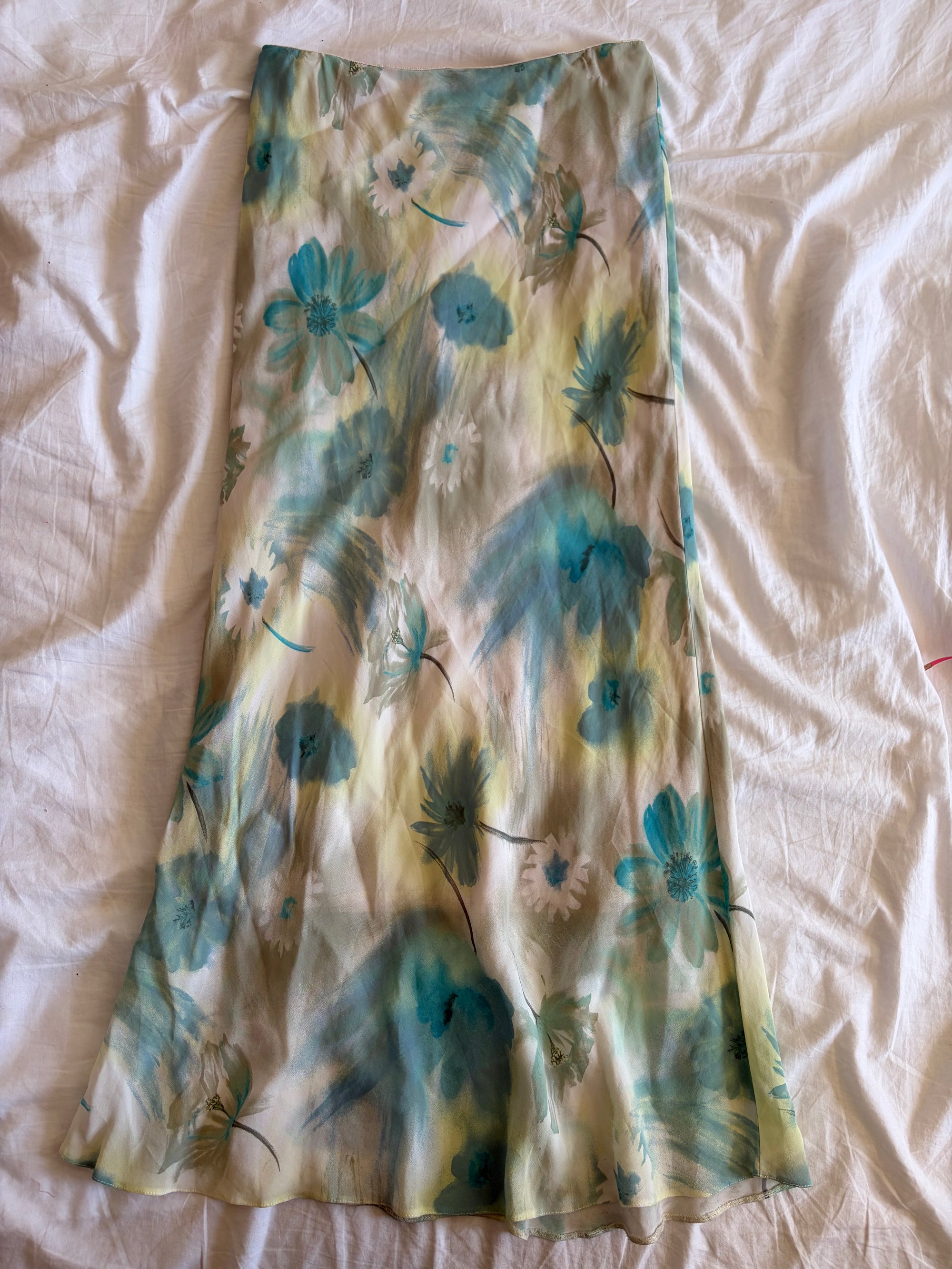 Vintage Y2K watercolour floral floaty maxi skirt with blues and yellows