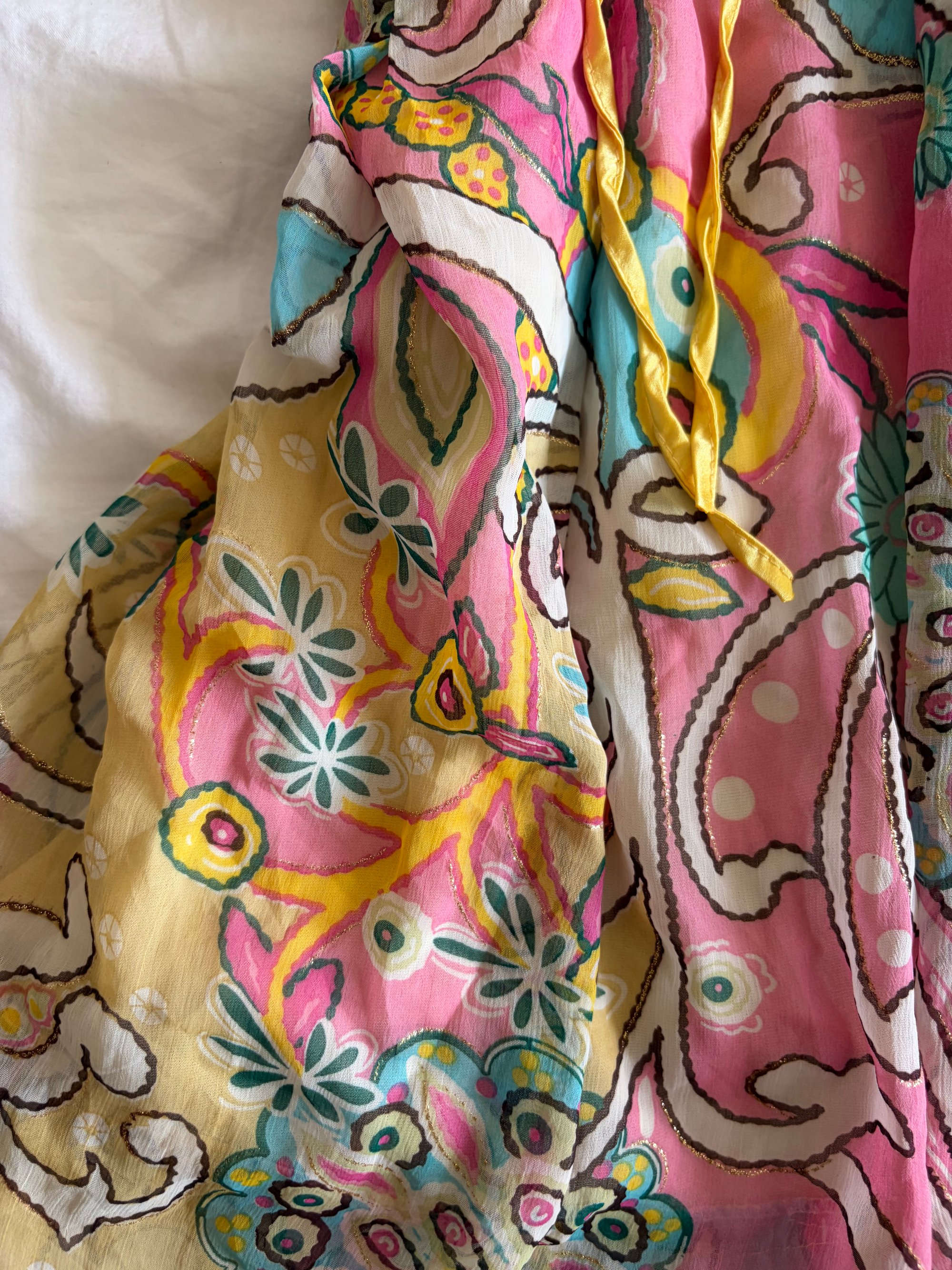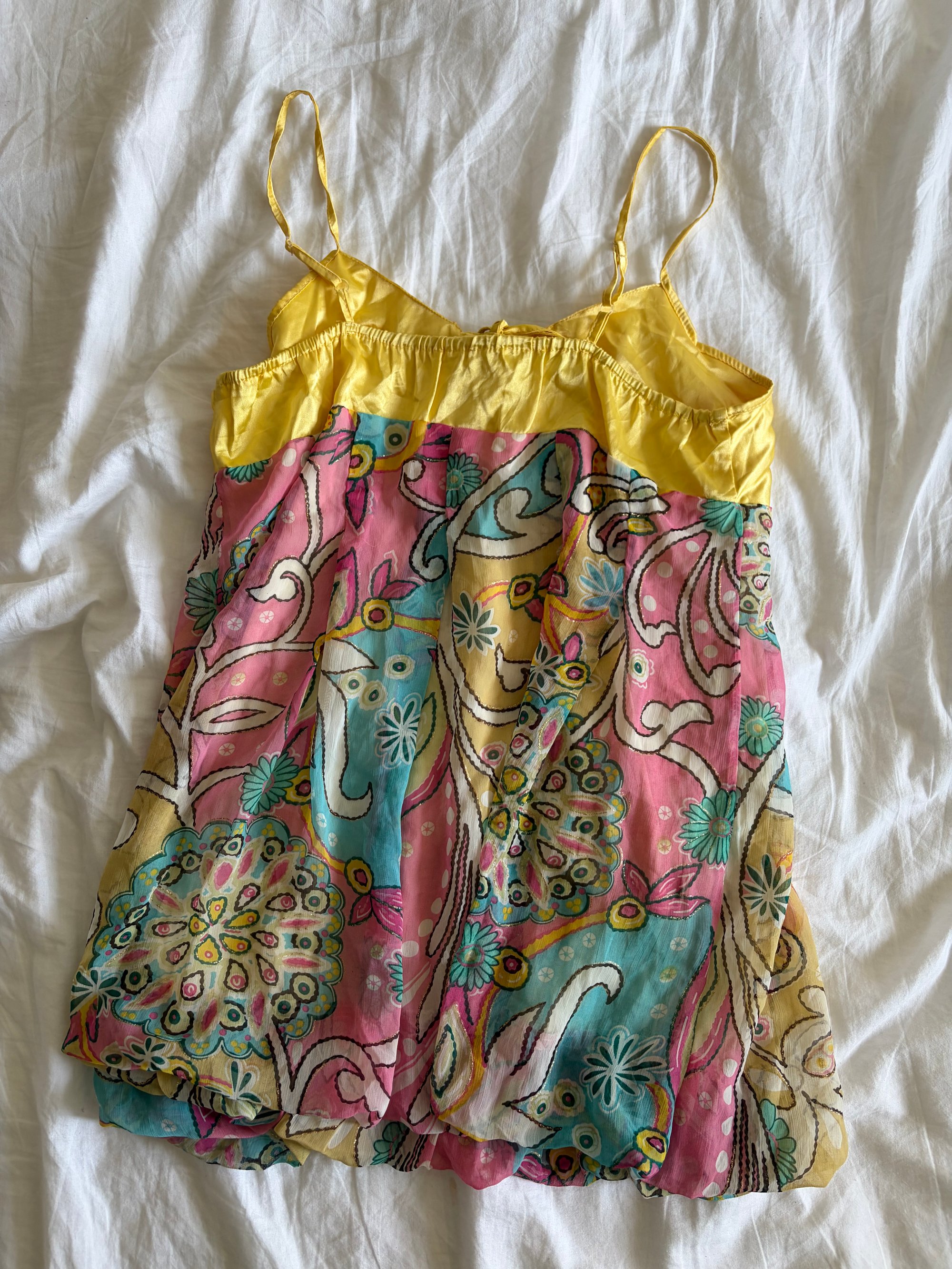 Vintage Y2K yellow fairy floral sparkly cami with balloon hem