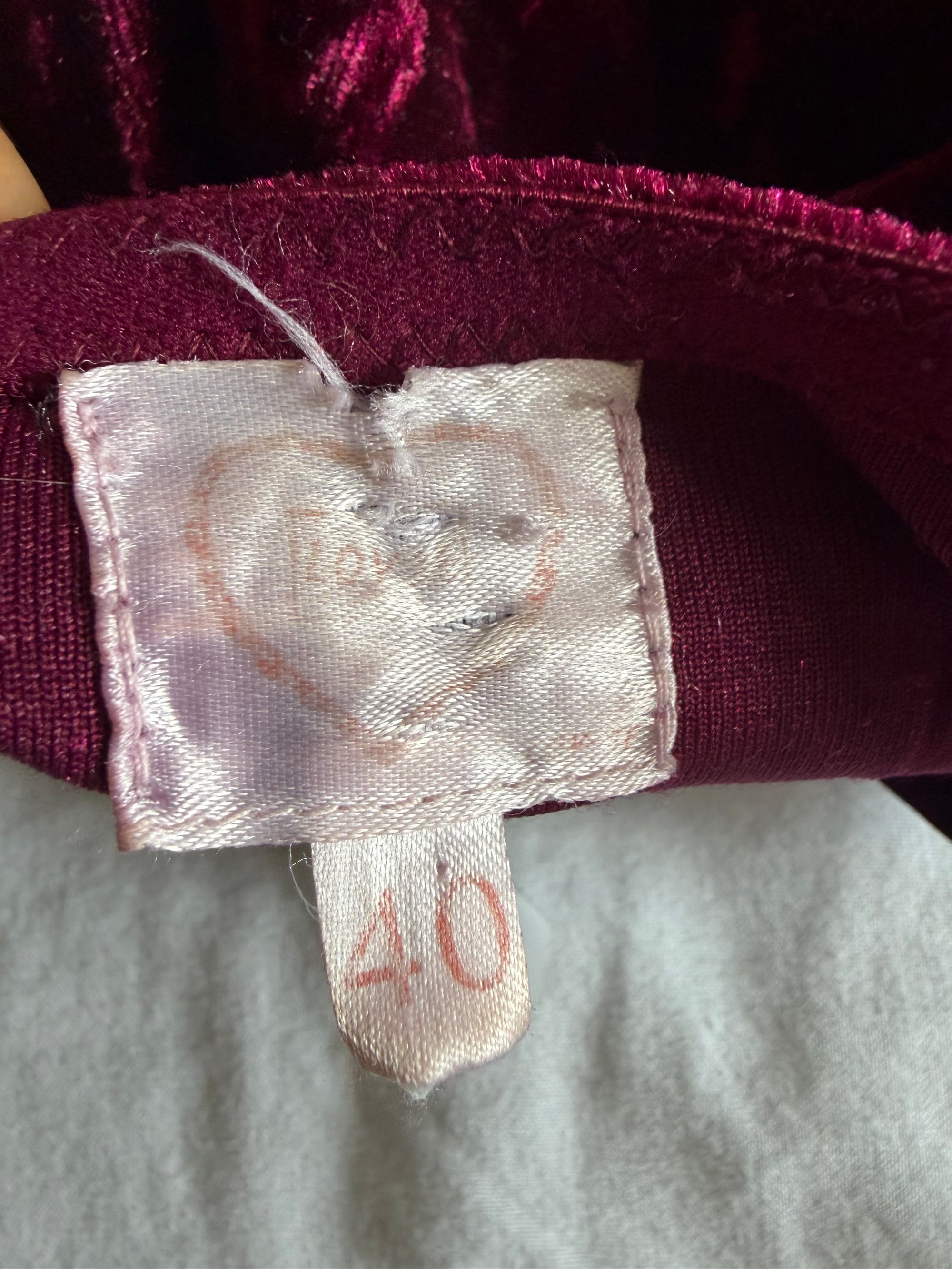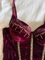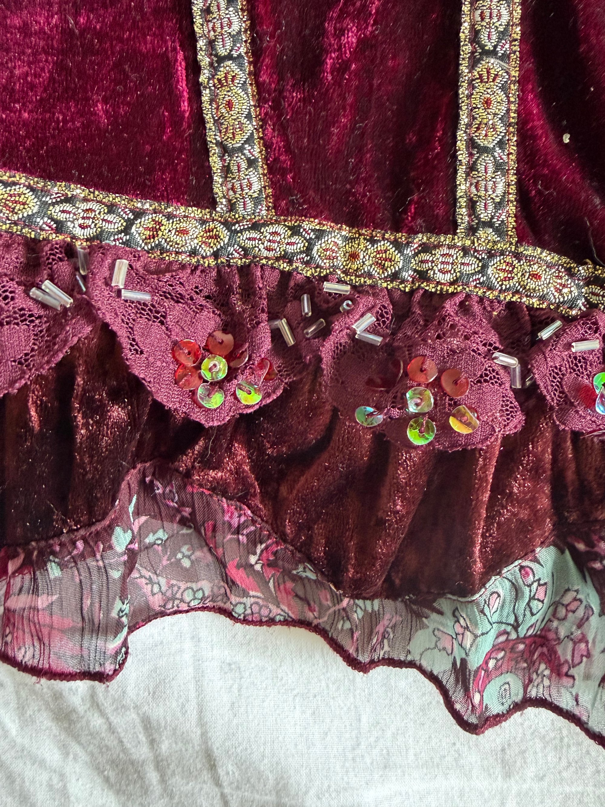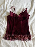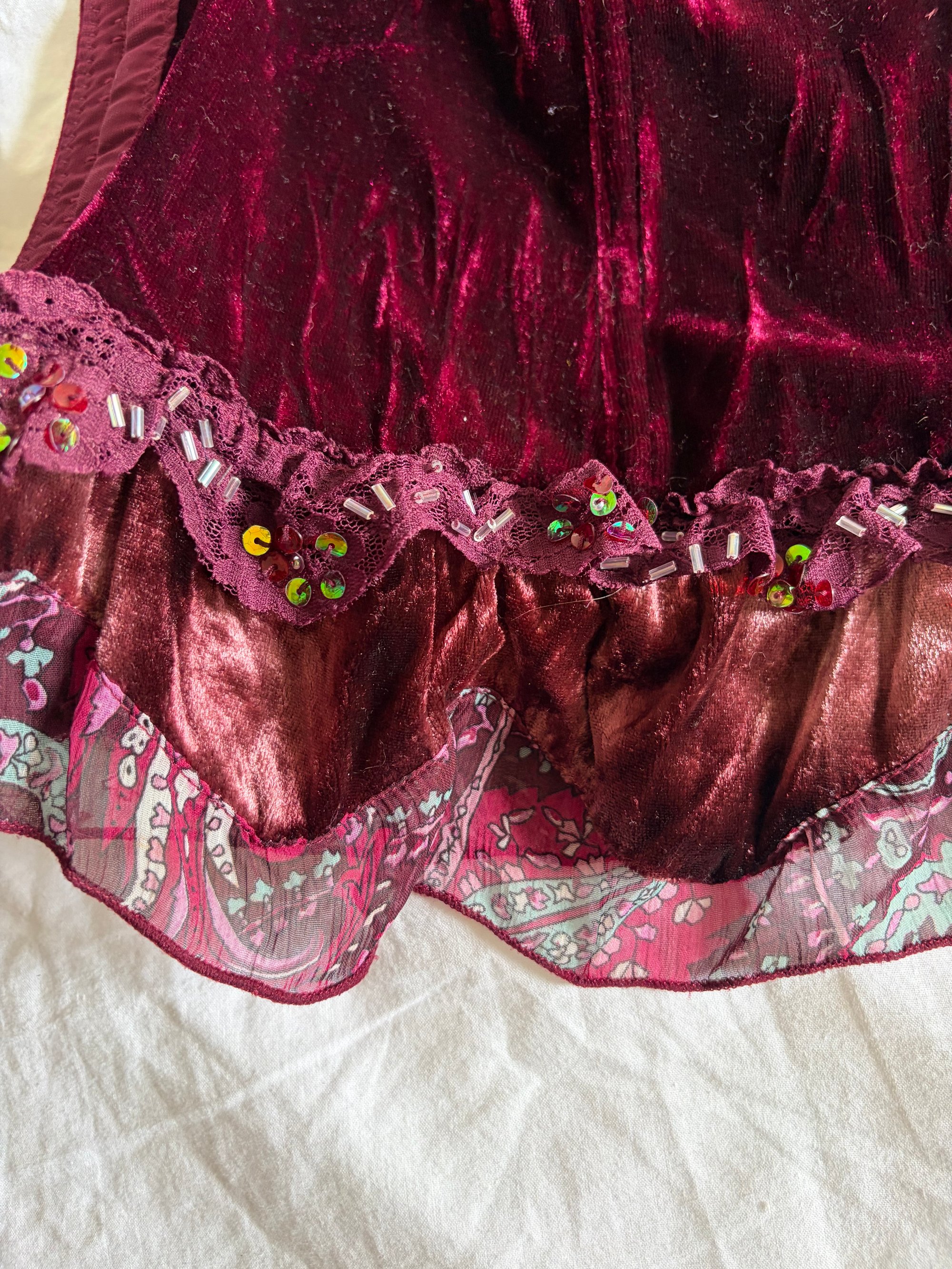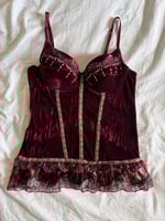 Y2K 2000s Rare Burgundy Corset Style Top With Sequins and Ruffle Hem